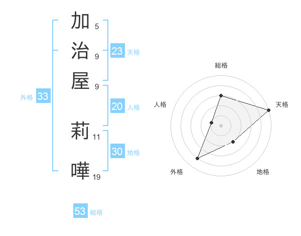 加治屋 莉嘩さんを姓名の画数から五運を鑑定