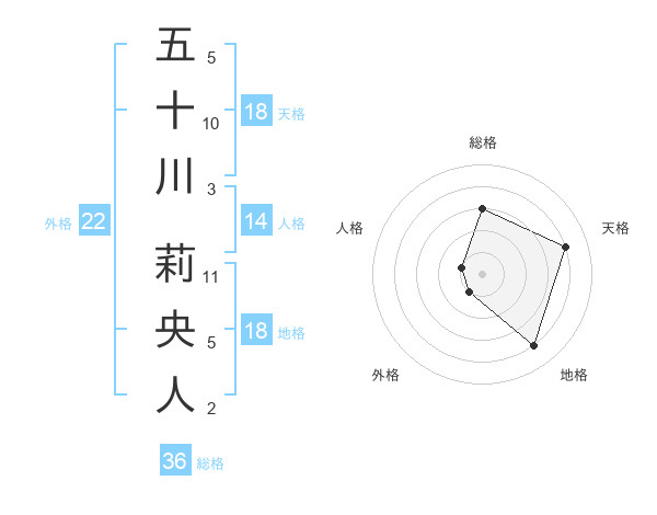五十川 莉央人さんを姓名の画数から五運を鑑定