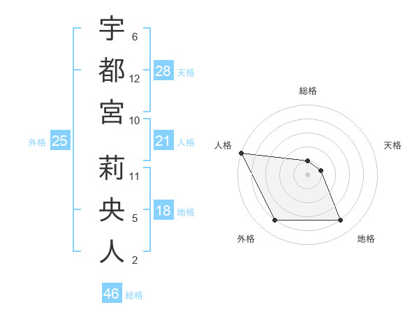 宇都宮 莉央人さんを姓名の画数から五運を鑑定