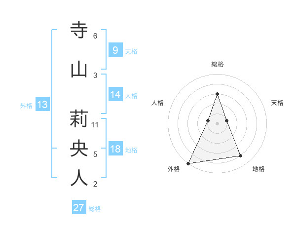 寺山 莉央人さんの外格は13画の5点!