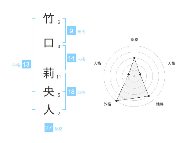 竹口 莉央人さんの外格は13画の5点!