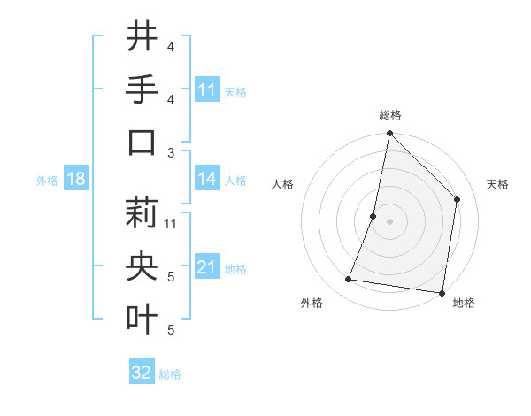 井手口 莉央叶さんを姓名の画数から五運を鑑定