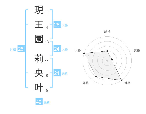 現王園 莉央叶さんを姓名の画数から五運を鑑定