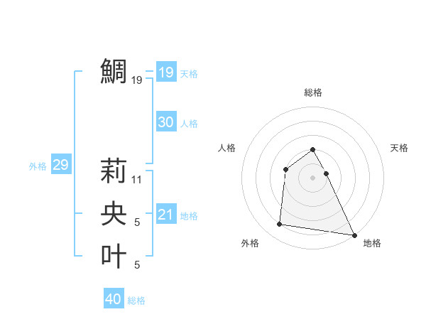 鯛 莉央叶さんの天格は19画の1点!