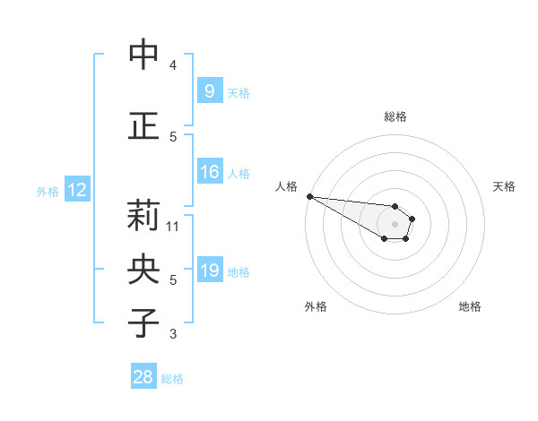 中正 莉央子さんを姓名の画数から五運を鑑定
