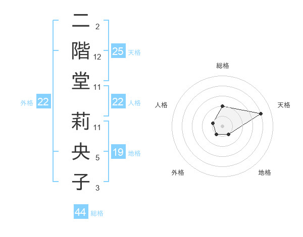二階堂 莉央子さんの天格は25画の4点!