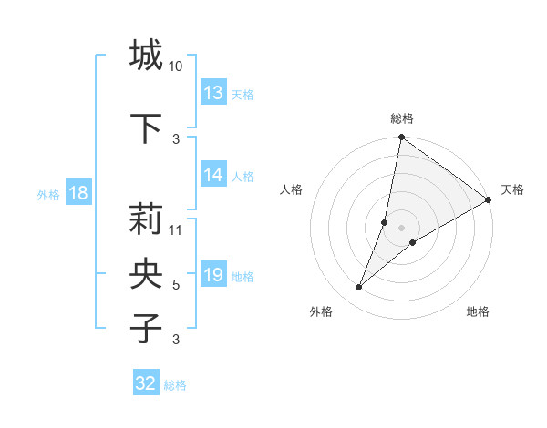 城下 莉央子さんを姓名の画数から五運を鑑定