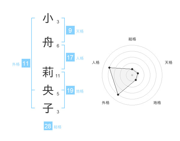 小舟 莉央子さんを姓名の画数から五運を鑑定