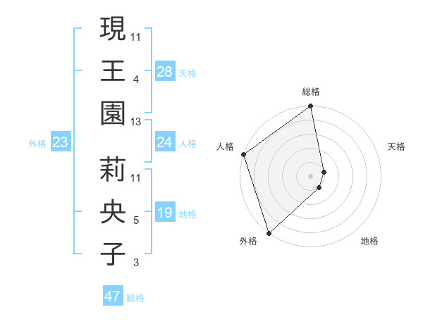 現王園 莉央子さんの外格は23画の5点!