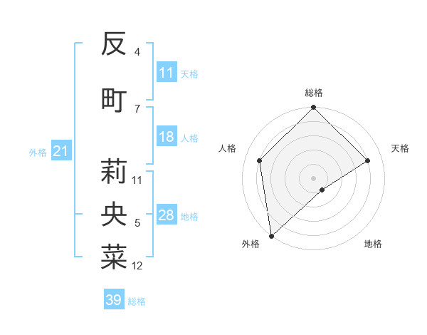 反町 莉央菜さんの総格は39画の5点!