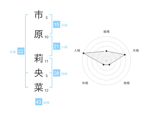 市原 莉央菜さんを姓名の画数から五運を鑑定