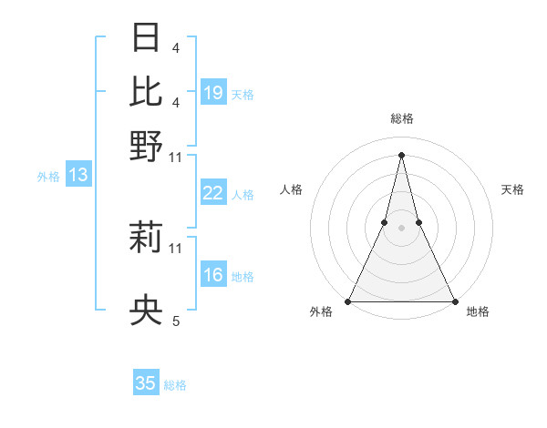 日比野 莉央さんを姓名の画数から五運を鑑定