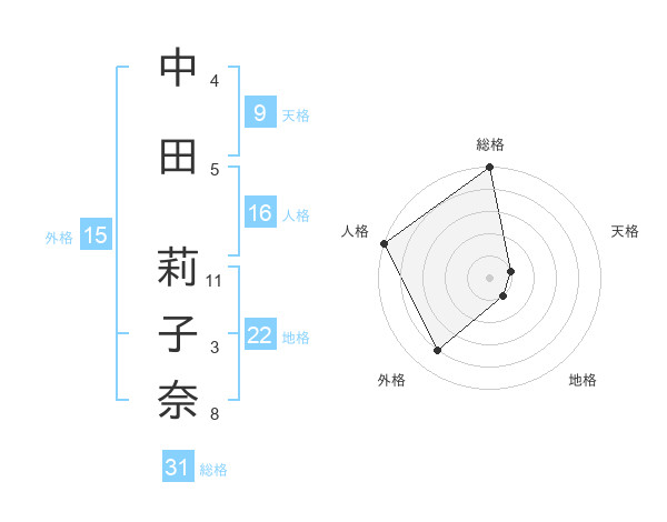 中田 莉子奈さんを姓名の画数から五運を鑑定