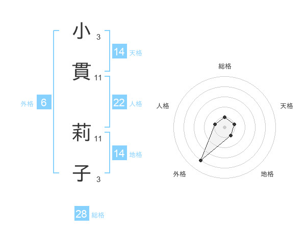 小貫 莉子さんを姓名の画数から五運を鑑定