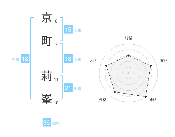 京町 莉峯さんの天格は15画の4点!