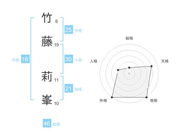 竹藤 莉峯さんの総格は46画の1点!