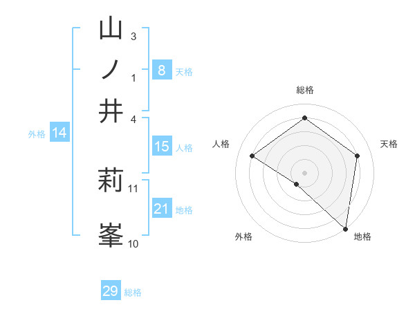 山ノ井 莉峯さんの総格は29画の4点!
