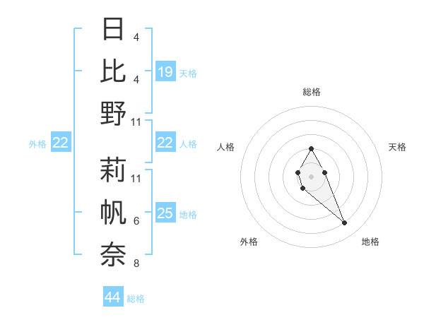 日比野 莉帆奈さんを姓名の画数から五運を鑑定