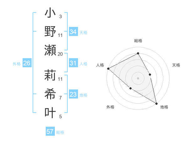 小野瀬 莉希叶さんを姓名の画数から五運を鑑定
