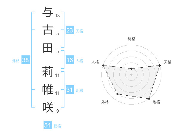 与古田 莉帷咲さんを姓名の画数から五運を鑑定