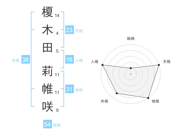 榎木田 莉帷咲さんを姓名の画数から五運を鑑定