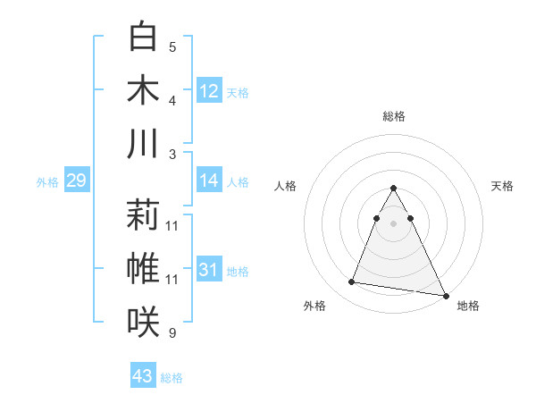 白木川 莉帷咲さんを姓名の画数から五運を鑑定