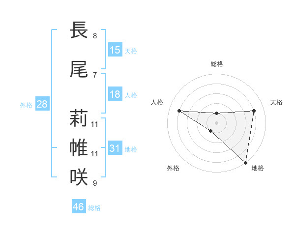長尾 莉帷咲さんを姓名の画数から五運を鑑定