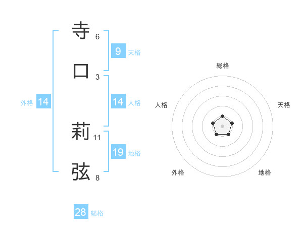 寺口 莉弦さんの総格は28画の1点!