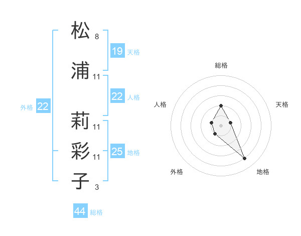 松浦 莉彩子さんを姓名の画数から五運を鑑定