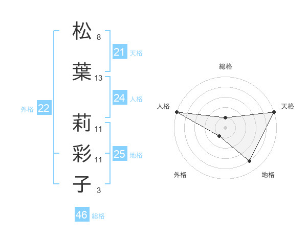 松葉 莉彩子さんを姓名の画数から五運を鑑定