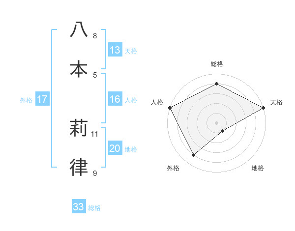 八本 莉律さんの外格は17画の4点!