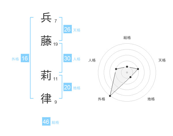 兵藤 莉律さんを姓名の画数から五運を鑑定