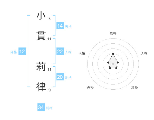 小貫 莉律さんを姓名の画数から五運を鑑定