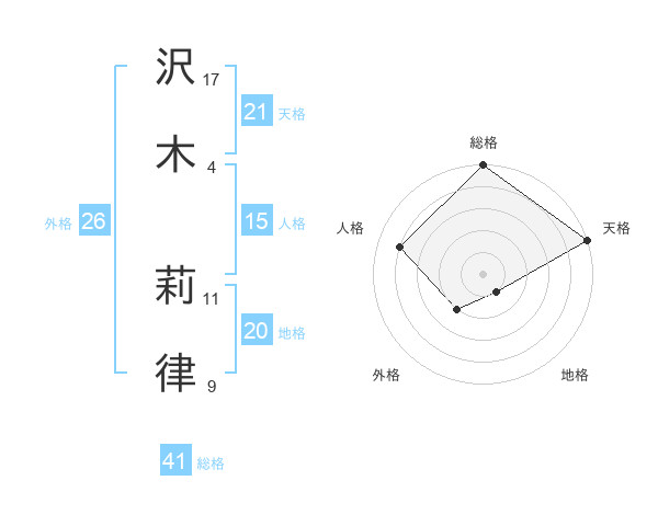 沢木 莉律さんを姓名の画数から五運を鑑定