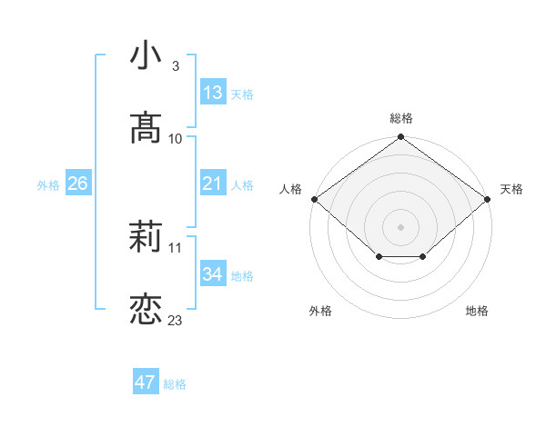 小髙 莉恋さんを姓名の画数から五運を鑑定
