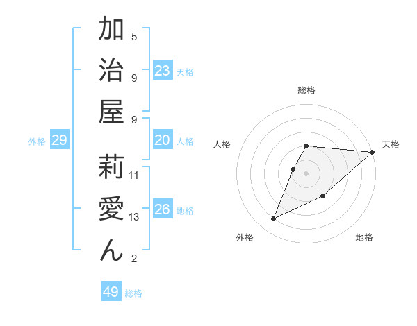 加治屋 莉愛んさんの天格は23画の5点