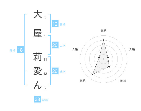 大屋 莉愛んさんの総格は38画の4点!