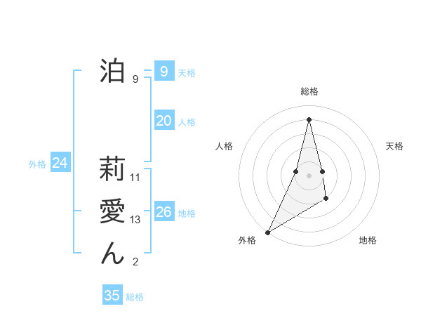 泊 莉愛んさんを姓名の画数から五運を鑑定