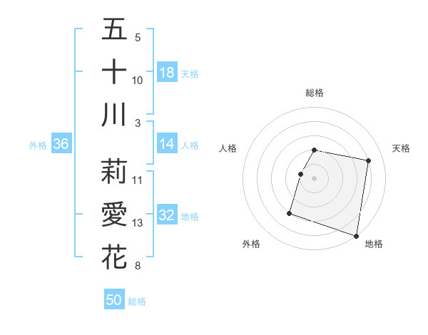 五十川 莉愛花さんを姓名の画数から五運を鑑定