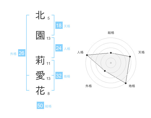 北園 莉愛花さんを姓名の画数から五運を鑑定