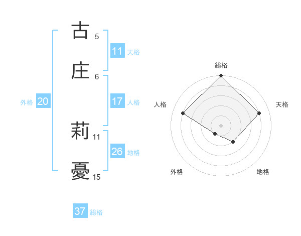古庄 莉憂さんを姓名の画数から五運を鑑定