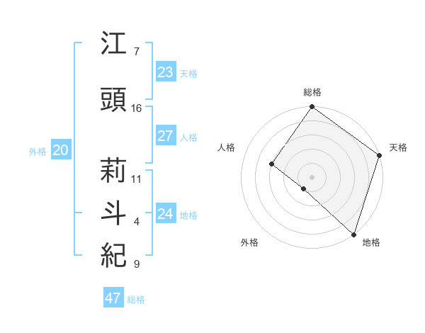 江頭 莉斗紀さんを姓名の画数から五運を鑑定
