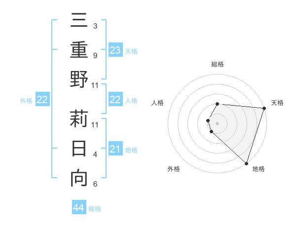 三重野 莉日向さんの総格は44画の2点