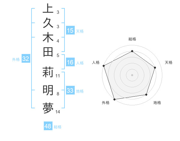 上久木田 莉明夢さんを姓名の画数から五運を鑑定