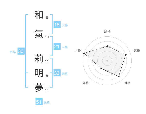 和氣 莉明夢さんの総格は51画の3点!