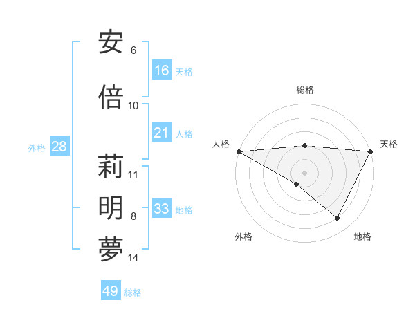 安倍 莉明夢さんの天格は16画の5点!