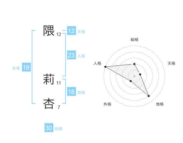 隈 莉杏さんの人格は23画の5点!