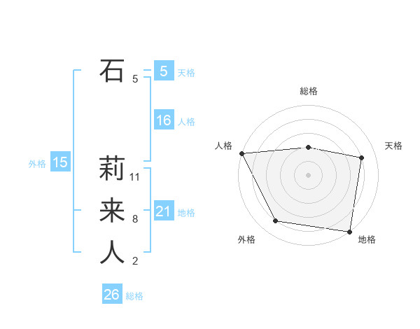 石 莉来人さんの地格は21画の5点!