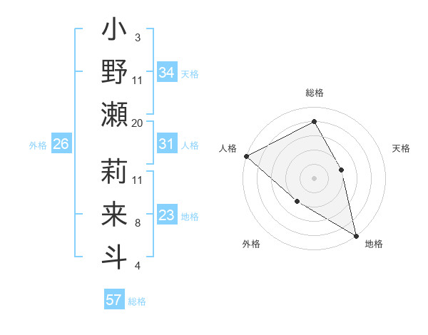 小野瀬 莉来斗さんを姓名の画数から五運を鑑定