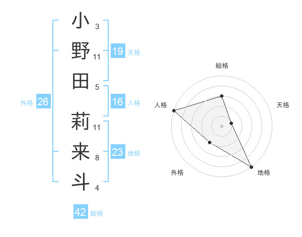 小野田 莉来斗さんを姓名の画数から五運を鑑定